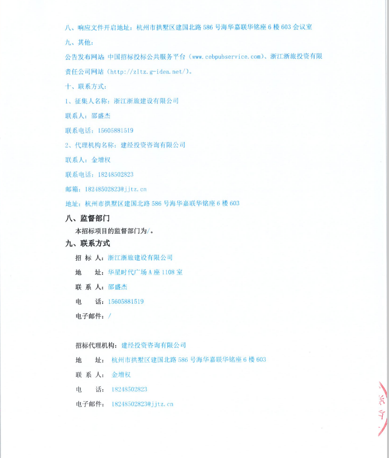 浙江浙旅建設(shè)有限公司分供商庫(市政類)補充征集公告