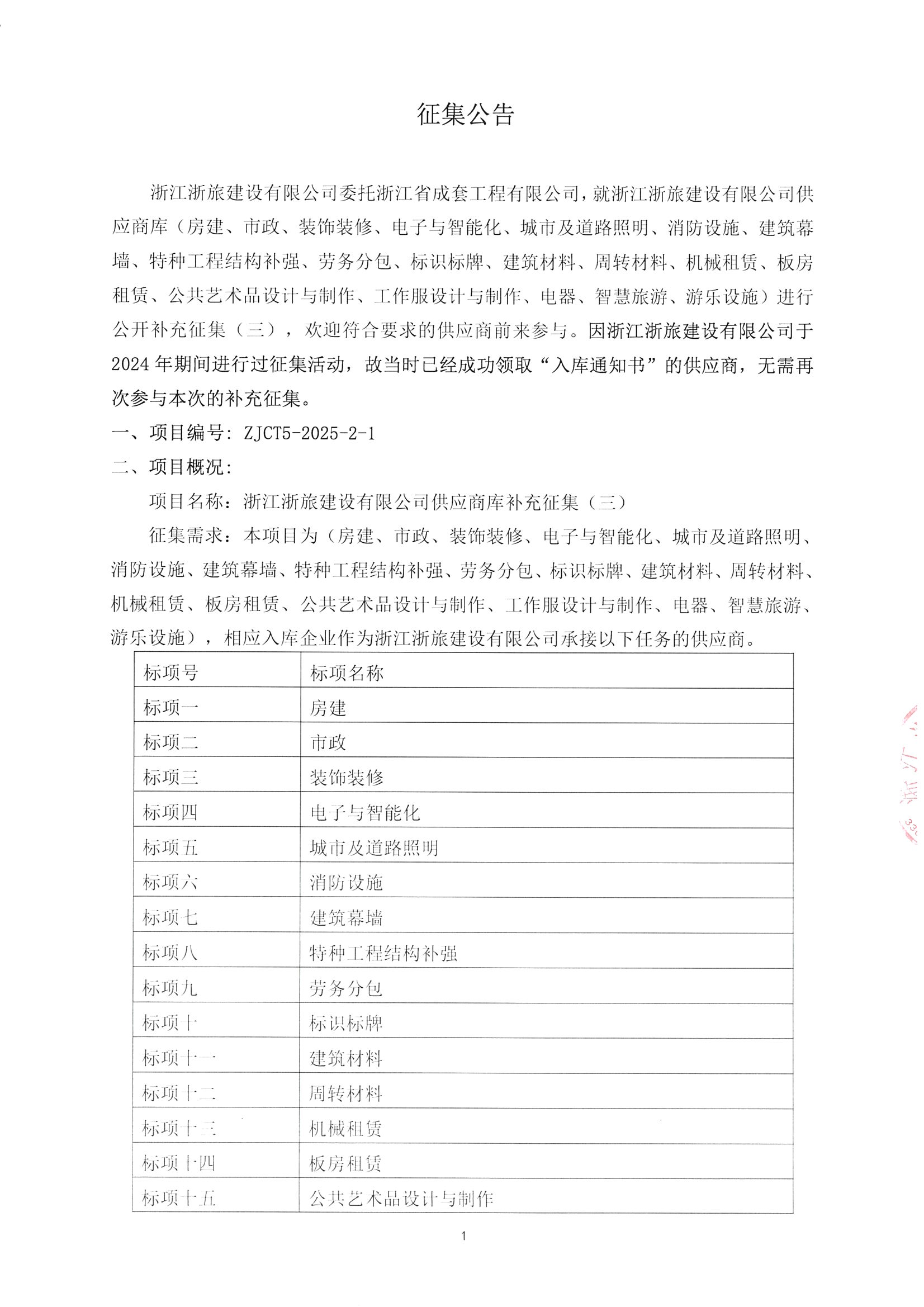 浙江浙旅建設(shè)有限公司供應(yīng)商庫(kù)補(bǔ)充征集(三)征集公告