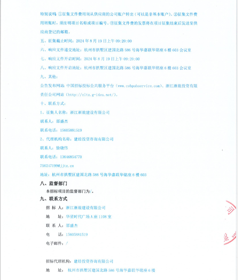 浙江浙旅建設有限公司分供商庫(市政類)補充征集公告