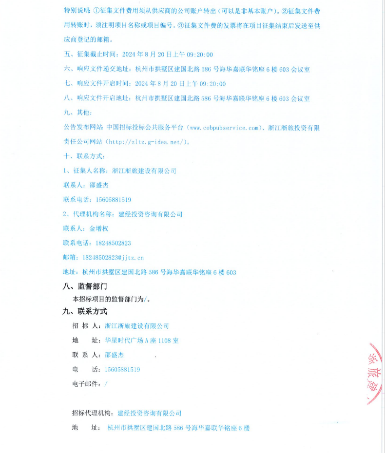 浙江浙旅建設有限公司分供商庫(智慧旅游)補充征集公告